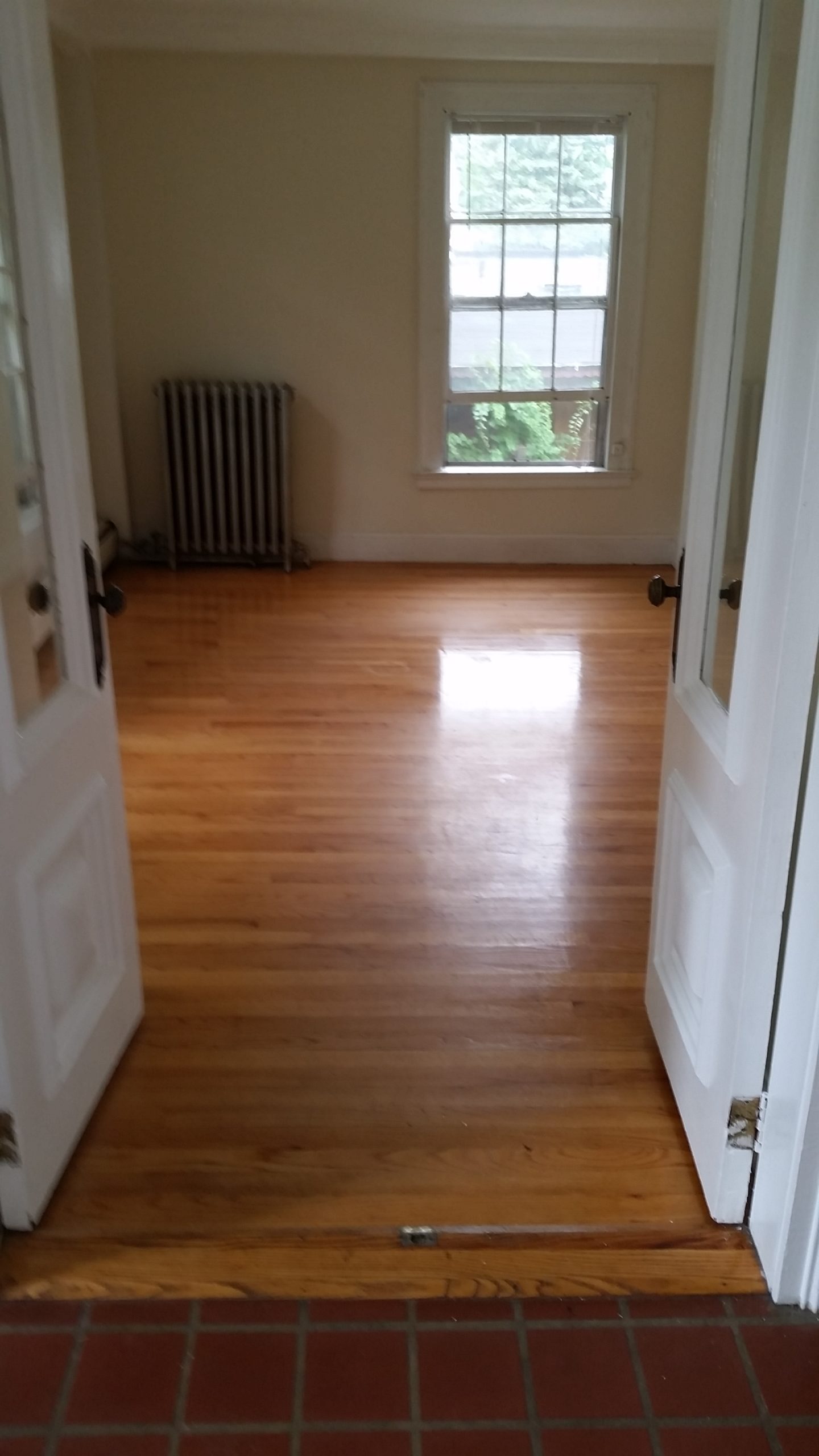 This second-floor apartment has much charm. A private balcony with an arched-glass door overlooks the front lawn, while French doors separate the bedroom from the kitchen. There are seven windows in the apartment, making it beautifully light. Original wide-Pine floors enhance the living room, and Terra Cotta tile in the kitchen add warmth.